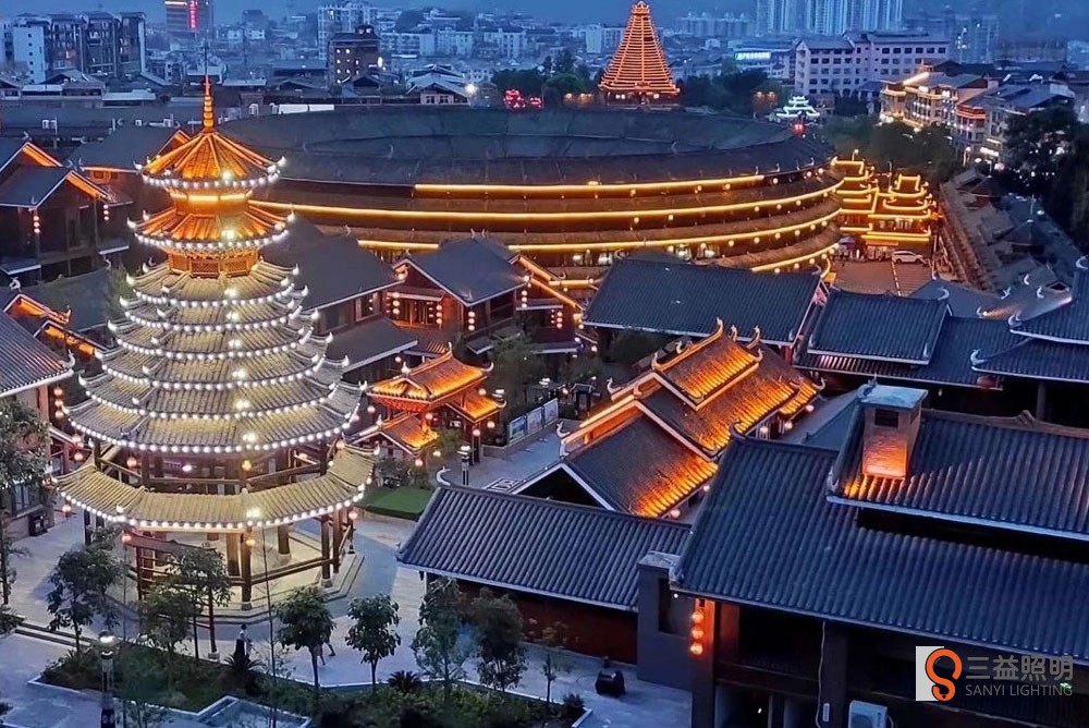 古城古建築群設計夜景燈光時,需要考慮以下幾個方麵:曆史文化:古城古建築群具有豐富的曆史文化內涵和特色,因此在設計夜景燈光時,需要尊重和突出這些曆史文化元素。可以···